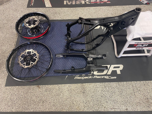 So in preparation we stripped down Austin's bike to the frame; there are no half measures when building a bike with MadJack Racing! That includes chassis preparation. Breaking down a new motorcycle certainly seems counter intuitive to many riders, but it's an essential step to ensuring the lifecycle of your bike -- even when you aren't doing a custom build from the ground up.