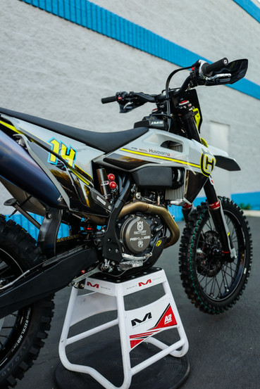 Add an IMS 3.2Gal in black, Austrian Handguards in black, P3 Carbon skidplate, ZipTy Racing Rear Rotor guard, Titanium hardware bolt kit -- and this Husqvarna wraps up as a weapon with unique aesthetics and unrivaled performance.